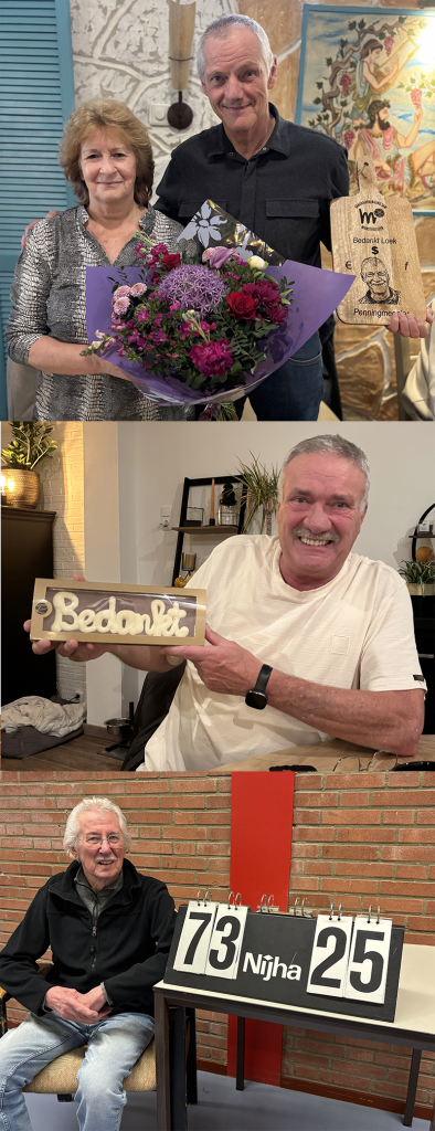Tijdens de jaarlijkse ALV afgelopen woensdag zijn drie bijzondere leden benoemd tot Ere-lid van onze vereniging, Loek Ehlen, Paul Royakkers en Harrie Pranger.